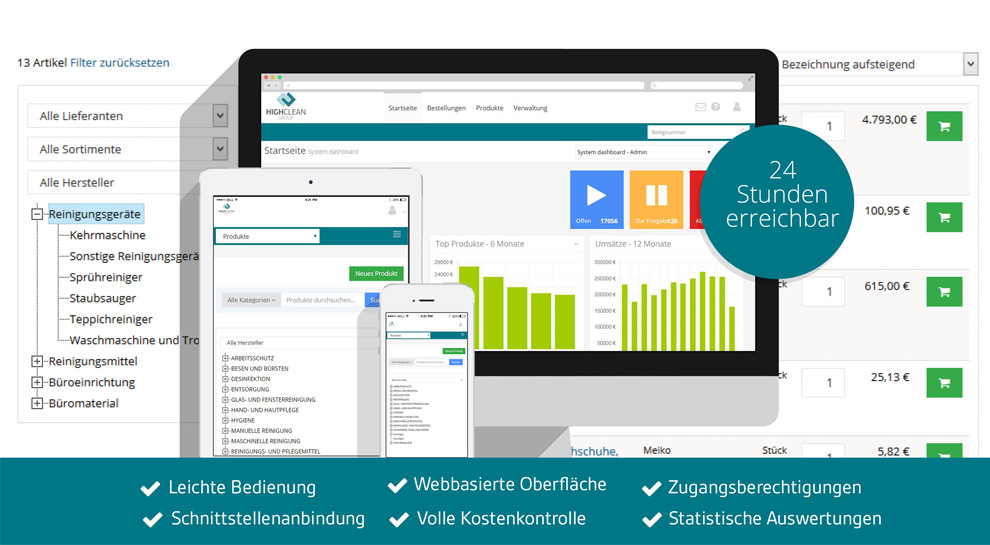 Von Bestellvorlagen und Budgets über Daueraufträge bis hin zu Auswertungen und Schnittstellen – Sie steuern alles bequem online und behalten jederzeit den Überblick über Ihre Einkäufe.