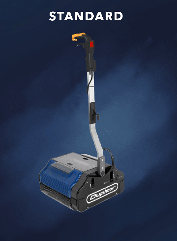 Die bekannte Duplex-Maschine für alle Böden. Besonders zur Reinigung struktureller Böden und Teppiche geeignet. Erhältlich als Kabel- und als Batterievariante.